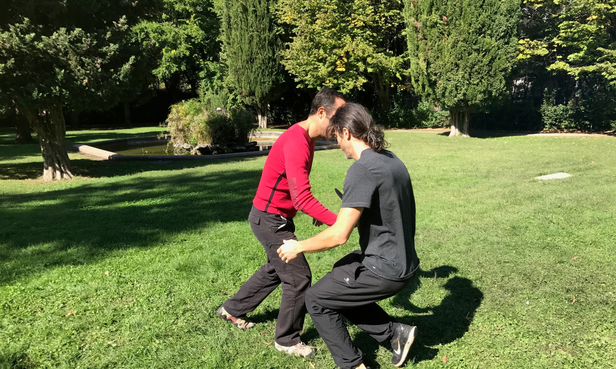 Dans le SYSTEMA pas de lutte, on ne résiste pas, on ne s’oppose jamais à la force par de la force, mais on utilise le mouvement du partenaire pour le calmer.
